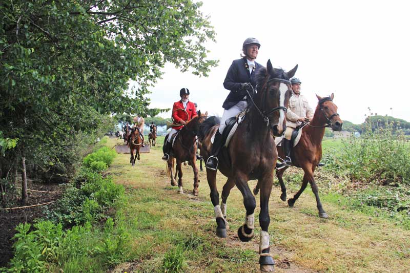 La riunione di caccia è costituita da più fasi talune con andatura da passeggiata nelle quali rilassarsi e far compagnia ed altre fatte di inseguimento al galoppo saltando gli ostacoli naturali predisposti, fino alla conclusione del percorso.A questo punto i cavalieri iresi liberi da un segnale del Master tentano la cattura della volpe.Vince chi riesce a staccare la coda che la volpe porta cucita sul suo mantello. Terminata la caccia e sistemati i cavalli, tutti insieme ci ritroviamo in un convivio nel quale ristorarsi delle fatiche appena trascorse e commentare gli avvenimenti del giorno.Un oggetto ricordo consegnato ai protagonisti della caccia rappresenta il saluto alla compagnia e l'invito alla successiva riunione.